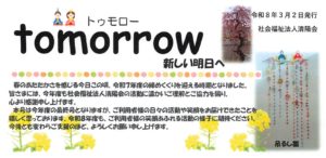 2月の「tomorrow」では、年始め会や初詣、紙すき作業の様子をお届けいたします。 詳しくはこちら(PDF形式)
